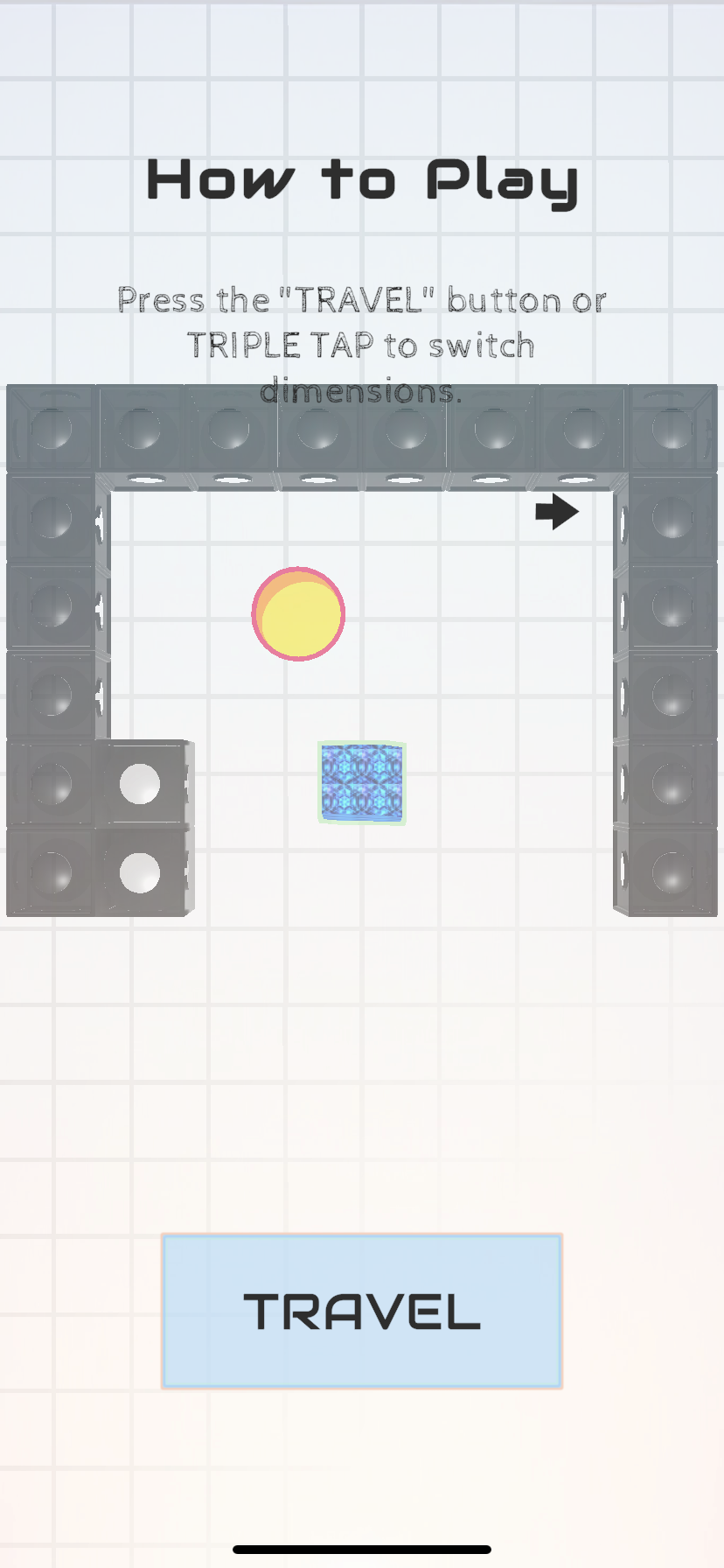 Mathematically, this game has four spatial dimensions, with the player having the ability to travel along the fourth dimension. This may be a tough concept for every player to understand immediately, which clashes with the idea of "simplicity" for this game. Instead, the idea of multiple "dimensions" in the empirical sense is leveraged, with the player being granted the ability to change the entire game environment with the single touch of a button.